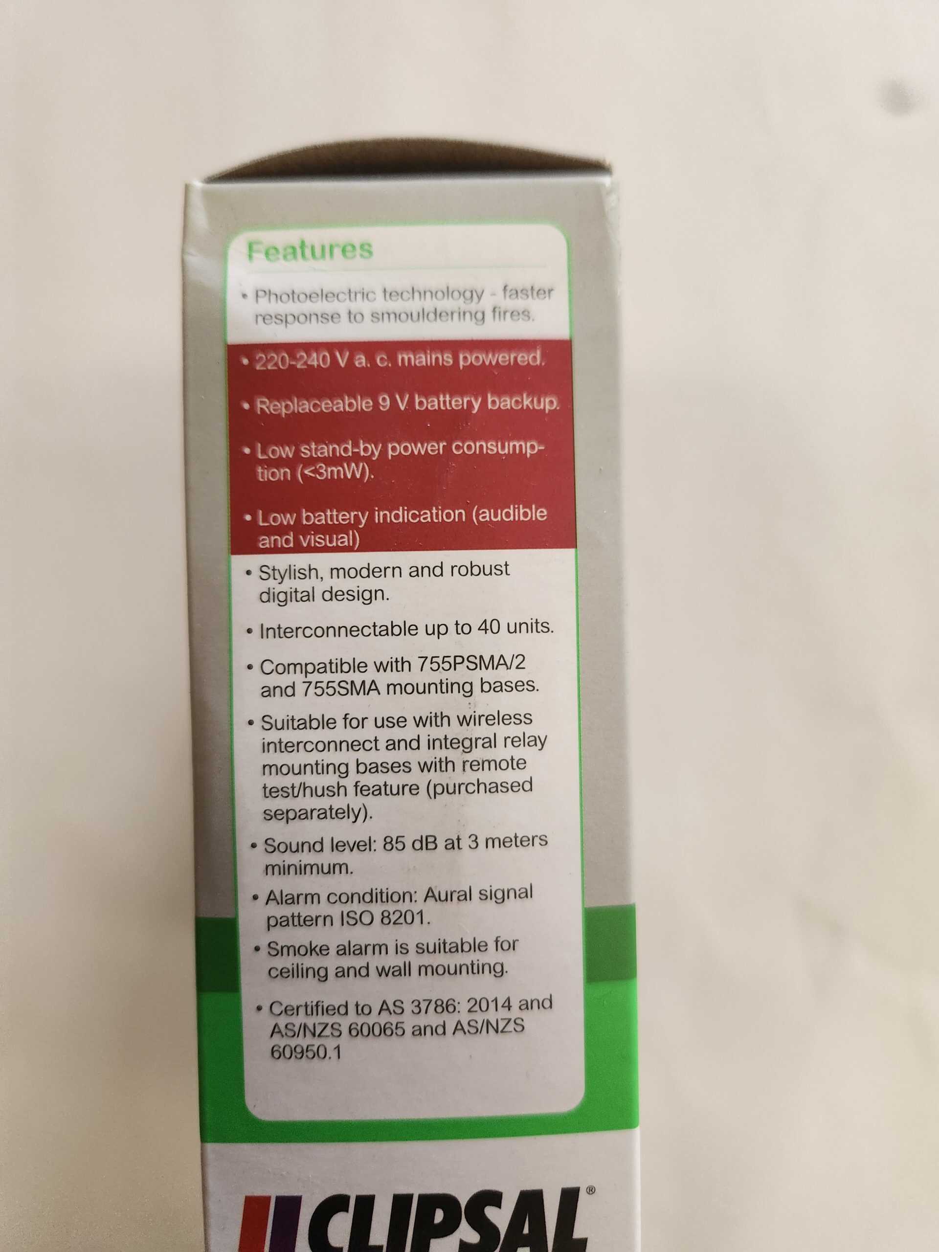 - Clipsal 755LPSMA4 Photoelectric technology for faster response to smoldering fires