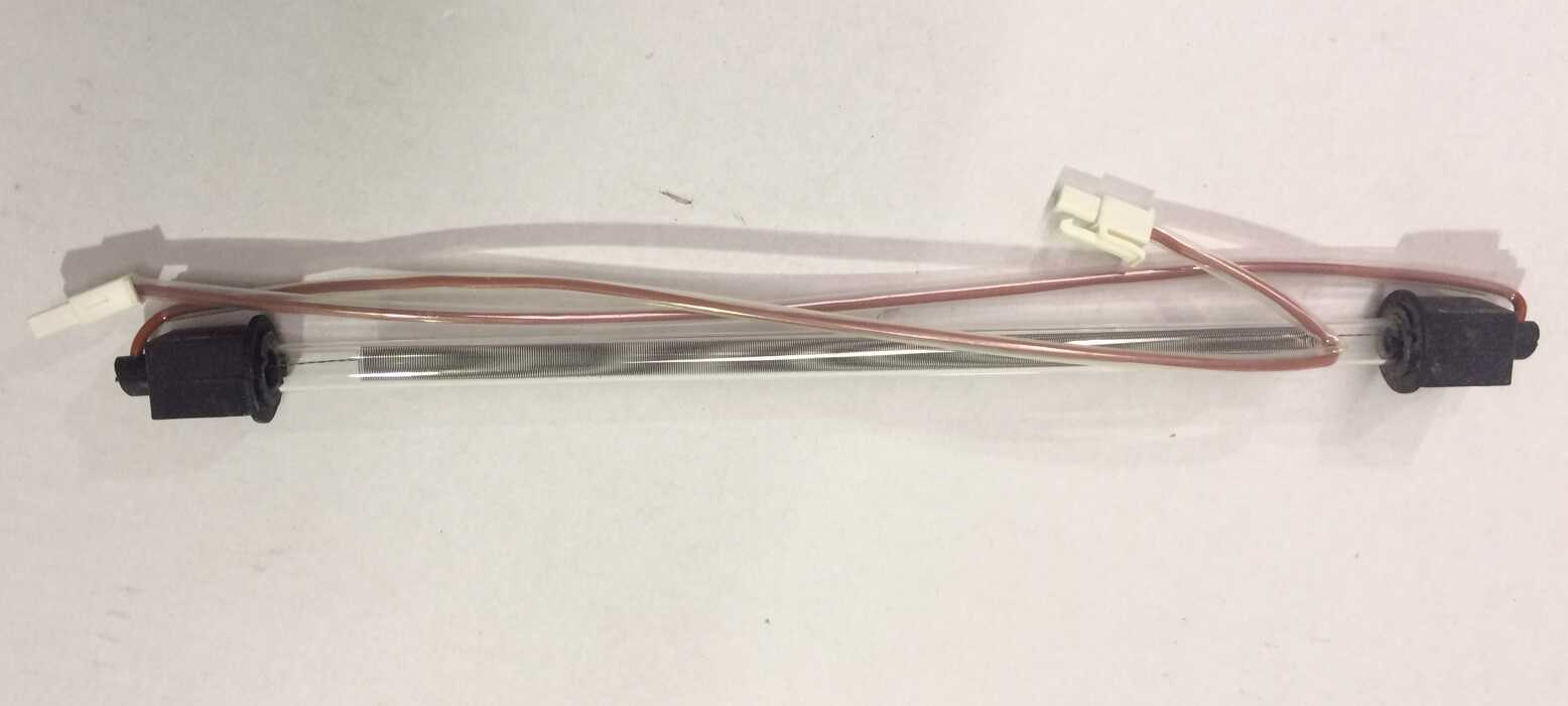 115Watt glass heater element. Total length between extremes of rubber ends – 31cm, lead length – 32cm Length of glass section between the rubber ends – 25cm.